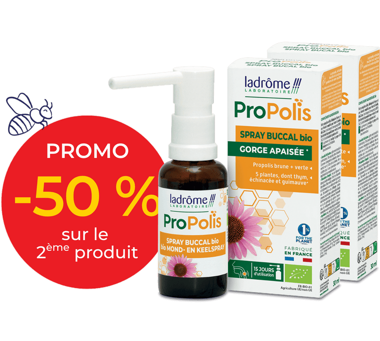 Reste à vous présenter notre gamme complète de solutions à base de propolis bio (propolis noire et verte), de produits de la ruche type gelée royale, d’extraits de plantes et d’huiles essentielles. Elles aident votre organisme à affronter l’hiver et les changements de saison sereinement. Sous toutes ses formes, notre propolis bio est notamment disponible en ampoule, spray buccal ou nasal, sirop et extrait.